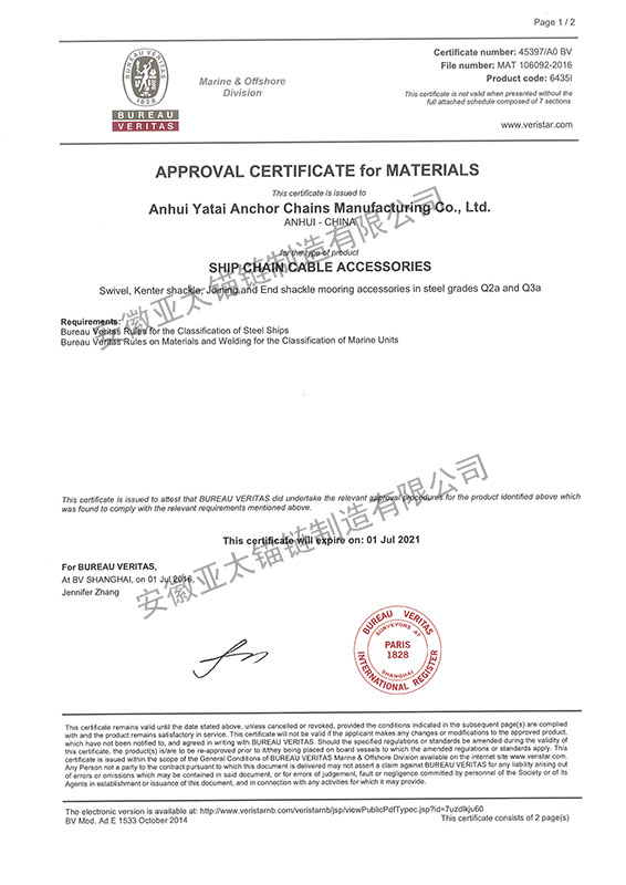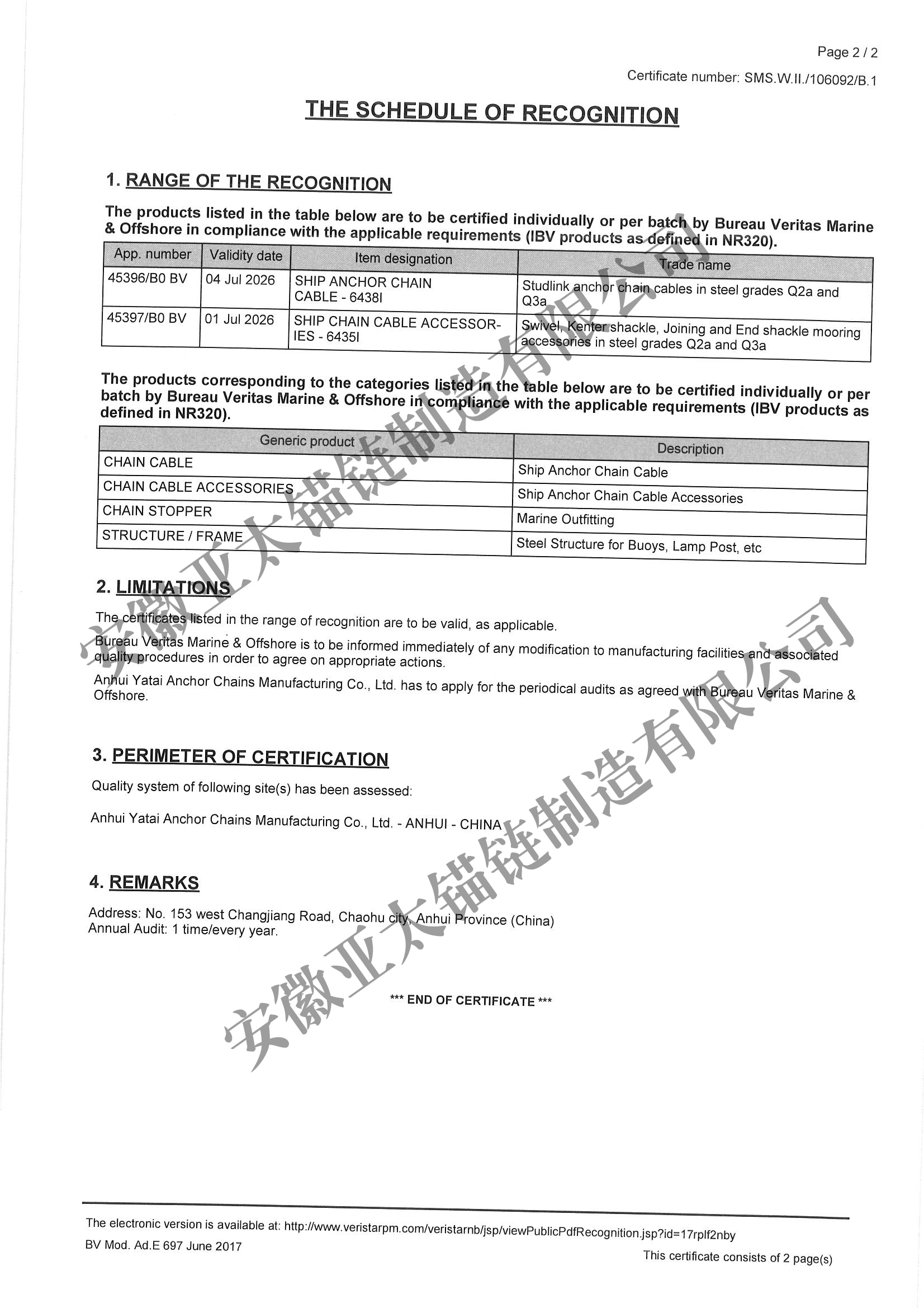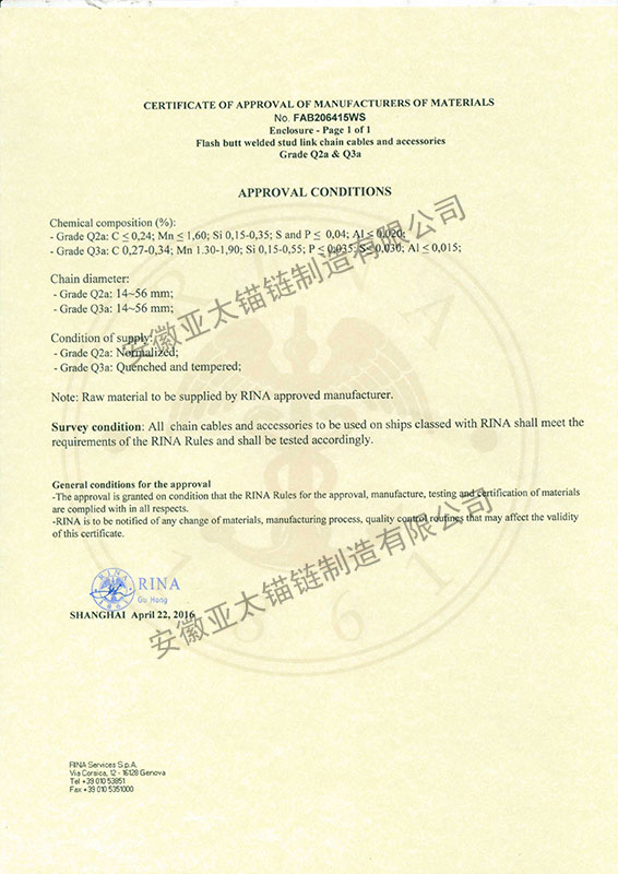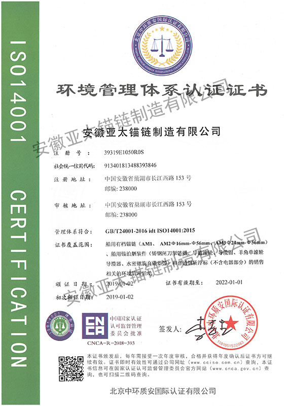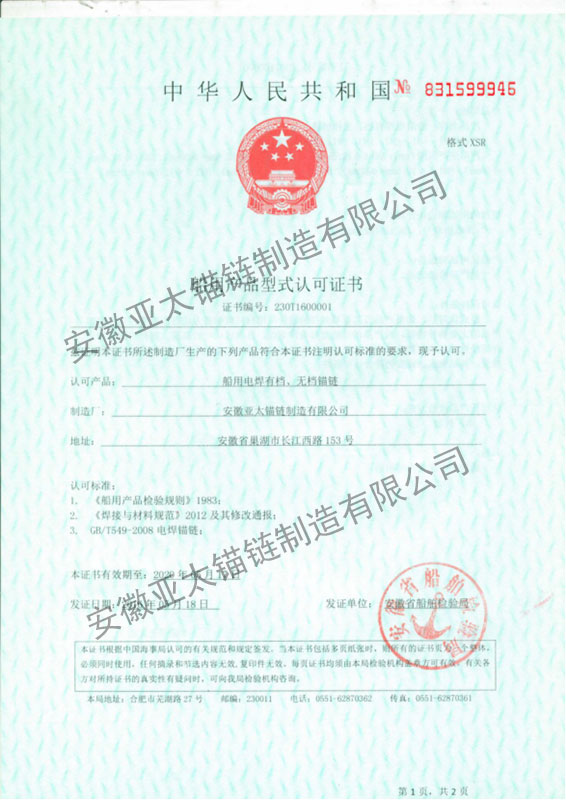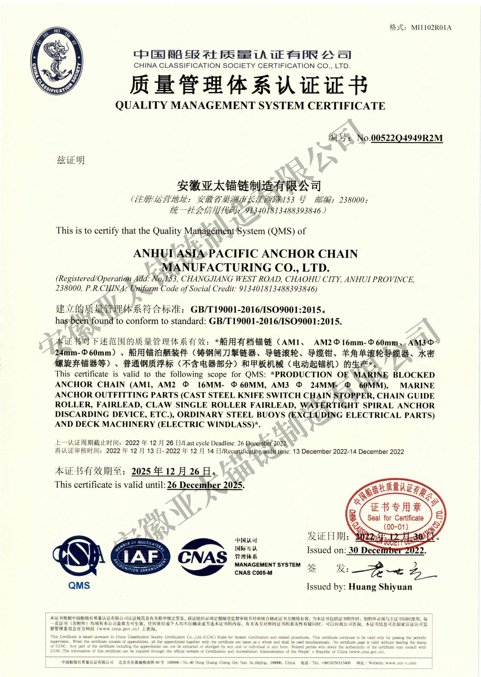 安徽亞太錨鏈制造有限公司是國(guó)家高新技術(shù)企業(yè),也是國(guó)家GB/T 549-2017《電焊錨鏈》標(biāo)準(zhǔn)的起草和制定單位之一。公司旗下設(shè)有錨鏈分廠(chǎng)、浮標(biāo)分廠(chǎng)、舾裝件分廠(chǎng)等多個(gè)分廠(chǎng)。公司專(zhuān)業(yè)從事φ12.5mm-φ107mm二、三級(jí)船用錨鏈、浮標(biāo)錨鏈、錨鏈附件,錨、船舶曬裝產(chǎn)品、航標(biāo)、系船浮、船型標(biāo)、多種規(guī)格海洋監(jiān)測(cè)浮標(biāo)及航標(biāo)燈等產(chǎn)品的生產(chǎn)、安裝和服務(wù)。目前公司的產(chǎn)品銷(xiāo)往全國(guó)各地船廠(chǎng)、碼頭、航標(biāo)處、航道局、海洋局,并已走上國(guó)際市場(chǎng),如東南亞、中東、歐美等國(guó)家。