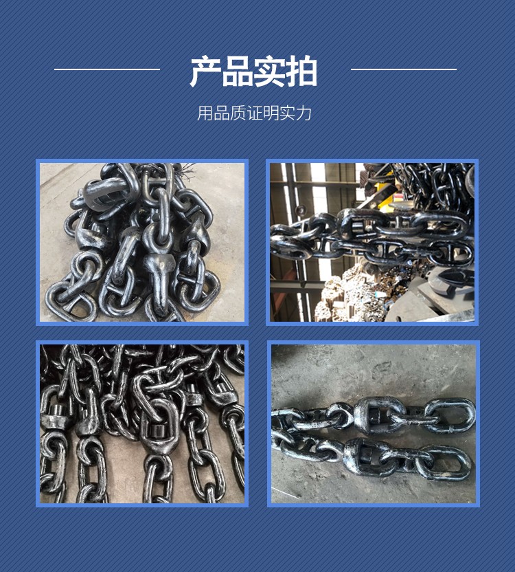 我廠可生產(chǎn)直徑Φ12.5mm-直徑Φ107mm的有檔、無檔、二、三級船用錨鏈。Φ8mm-Φ53mm浮標鏈;Φ13mm-Φ52mm轉環(huán);Φ13mm-Φ65mm連接卸扣;Φ13mm-Φ65mm末端卸扣;Φ13mm-Φ70mm各種材質,各種規(guī)格非標準錨鏈、不銹鋼鏈、加大環(huán)、圓環(huán)、三角環(huán)、環(huán)鉤等。